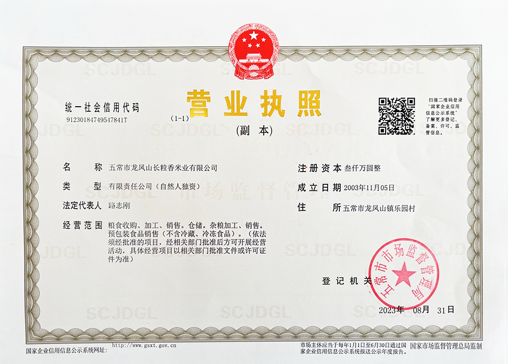 | 五常市龍鳳山長粒香米業(yè)有限公司 |